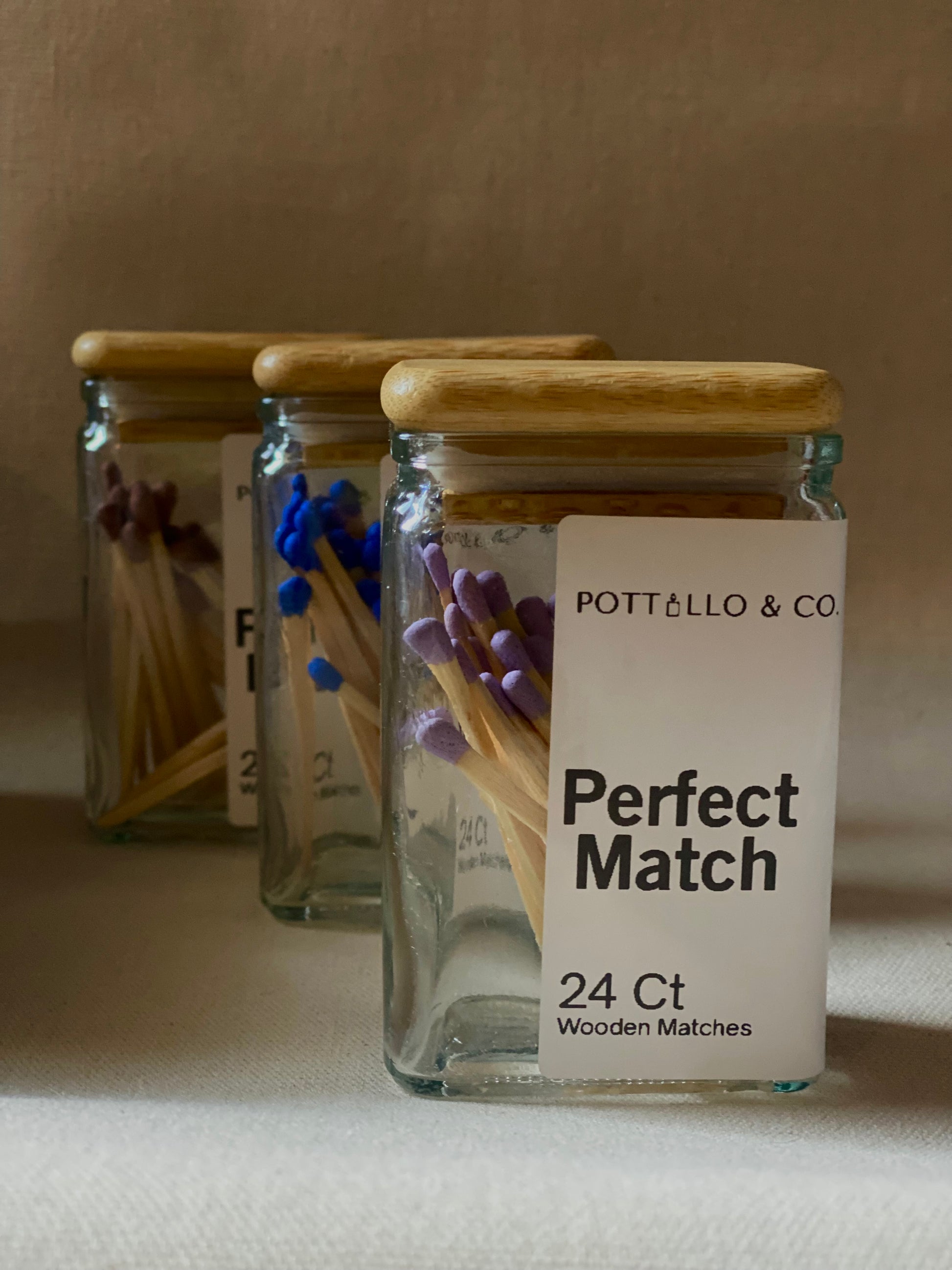 Say hello to your new favorite little luxury. Our Perfect Match wooden matches come in a chic glass jar topped with a smooth bamboo lid—made to add a soft touch of style to your space. Inside, you’ll find 24 wooden matches with colorful tips that make lighting your favorite candle feel just a little more special.
